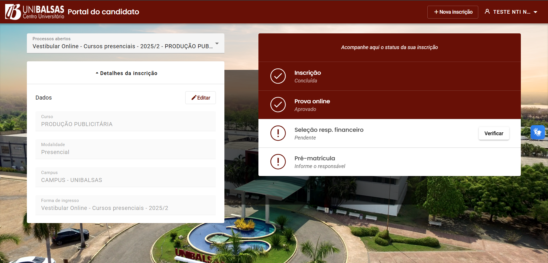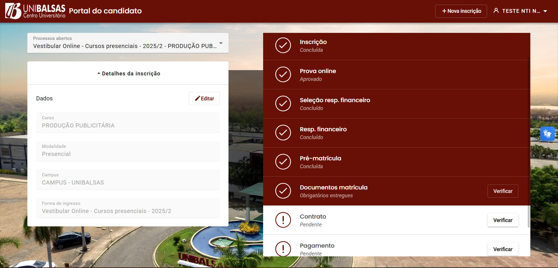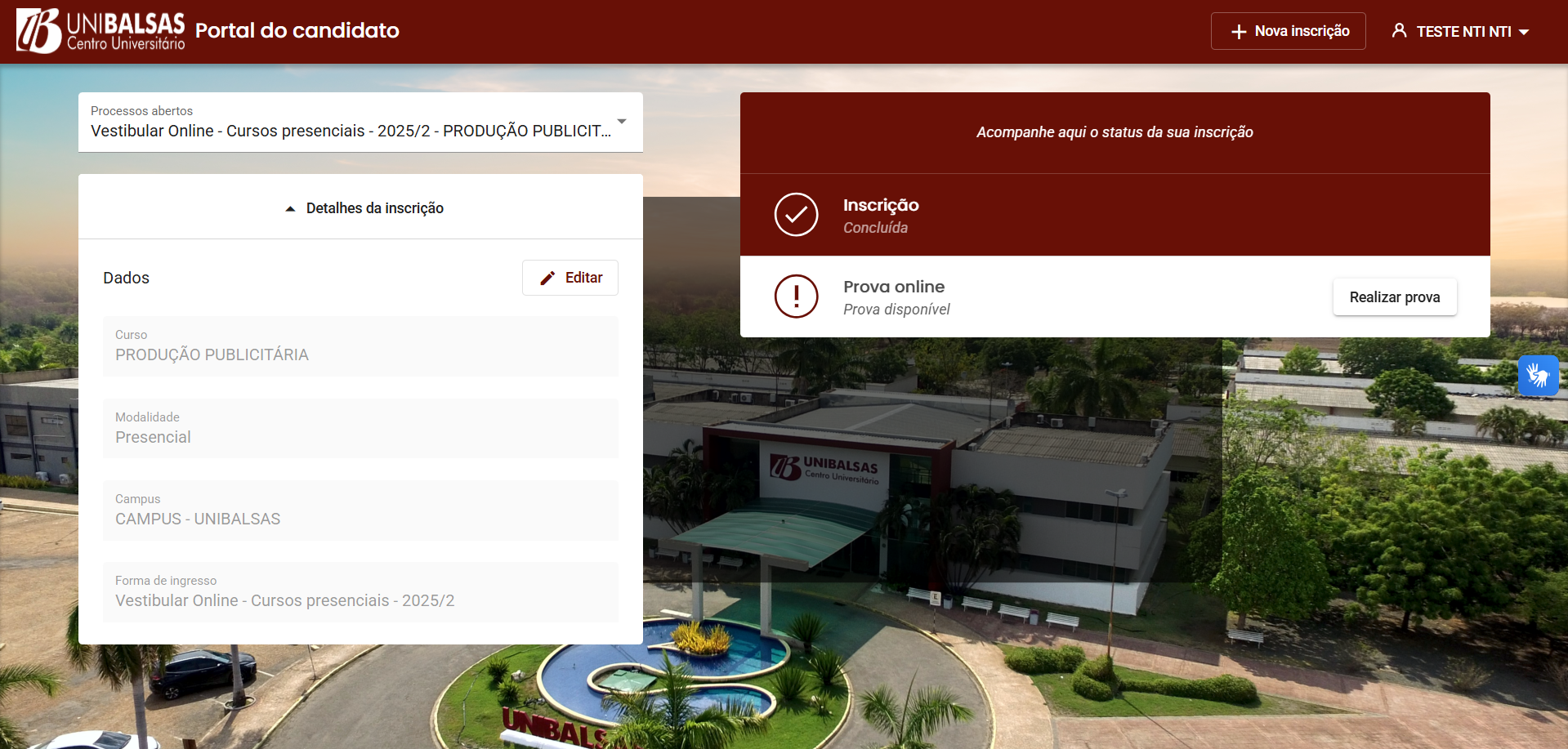 Ao voltar ao portal do candidato, ficará desta forma a tela: