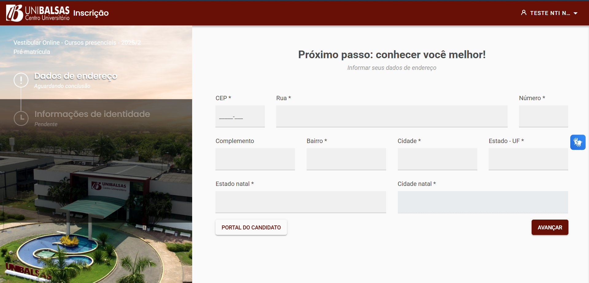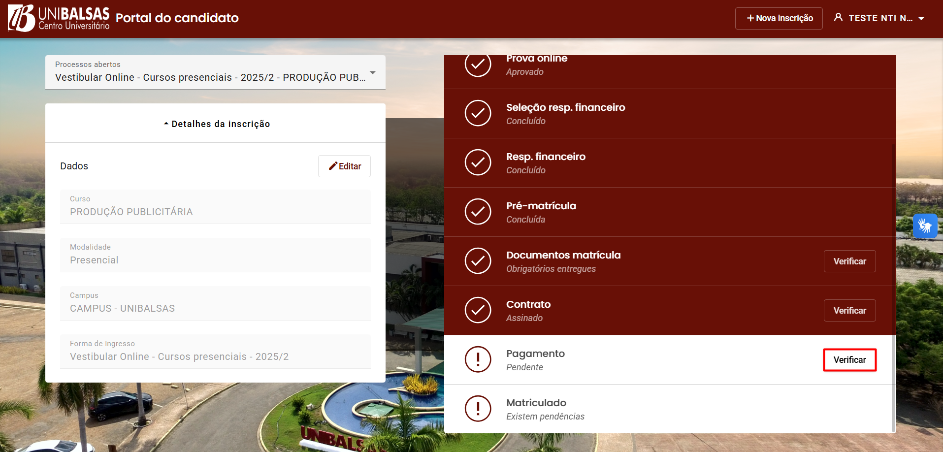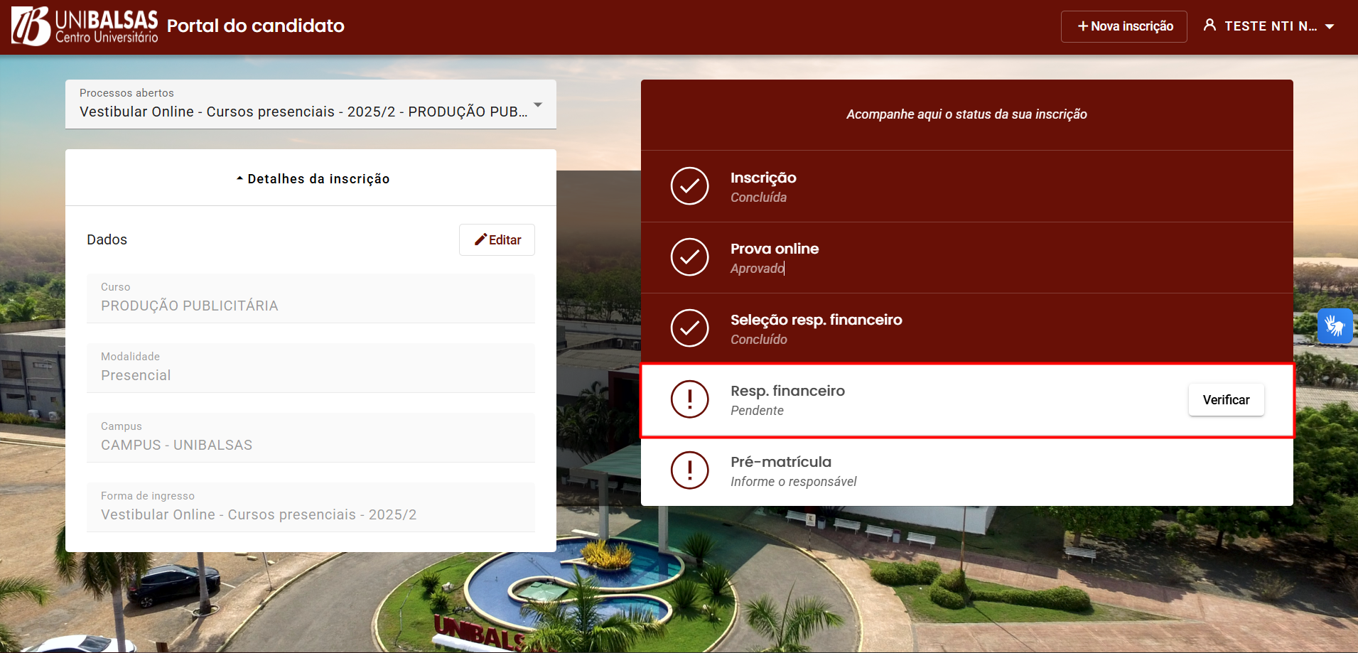 Ao voltar ao portal do candidato, ficará desta forma a tela: