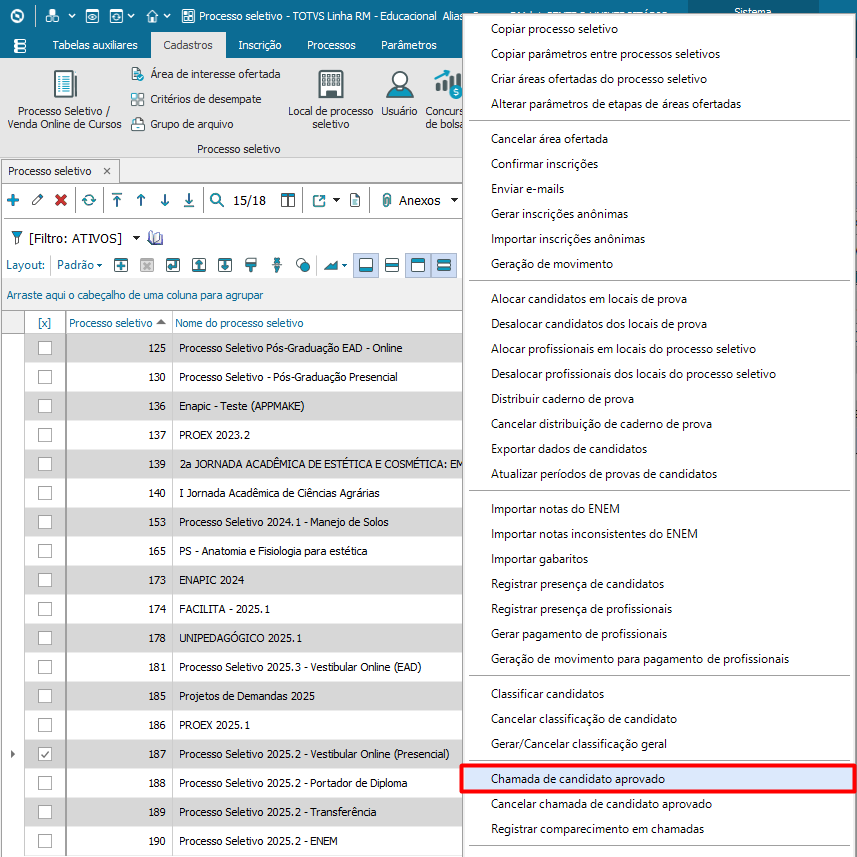 Após o processo de classificação, precisa ser realizado o processo de chamada do candidato ainda dentro do RM.