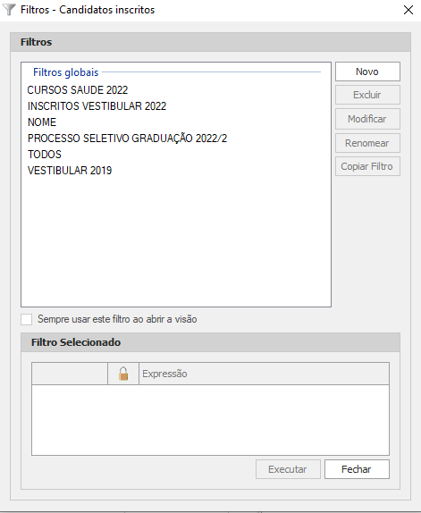 Depois selecione o filtro que desejar, e aperte em "Executar".