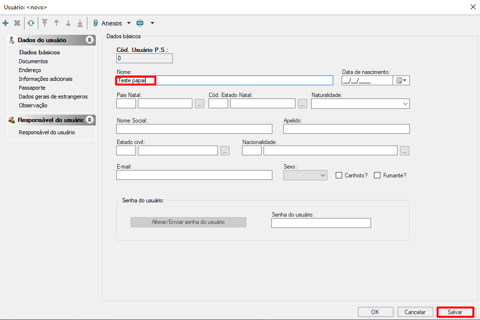 Logo em seguida, aperte em "Responsável do usuário", depois aperte no botão +
