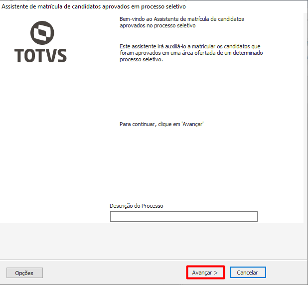 Após isso, irá aparecer uma tela de processo, aperte em "Avançar".