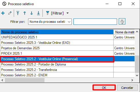 Sendo assim, verifique se está marcado o processo seletivo do vestibular online, logo após aperte em processo e aperte em "Chamada de candidato aprovado".
