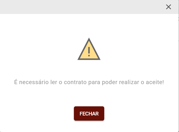 Caso o candidato não faça nenhum dessas duas coisas mencionadas a cima, aparecerá um erro informando que o candidato não leu o contrato.