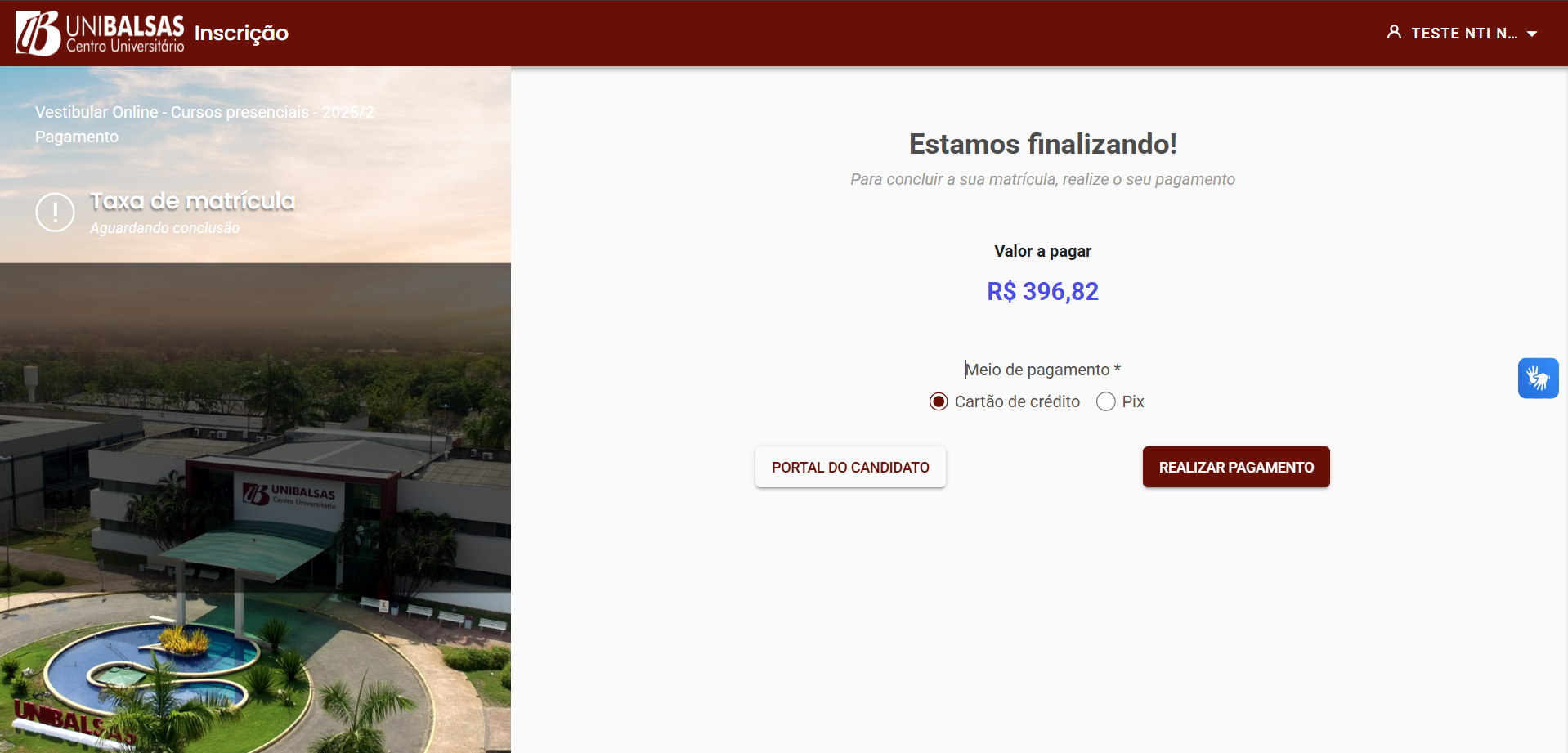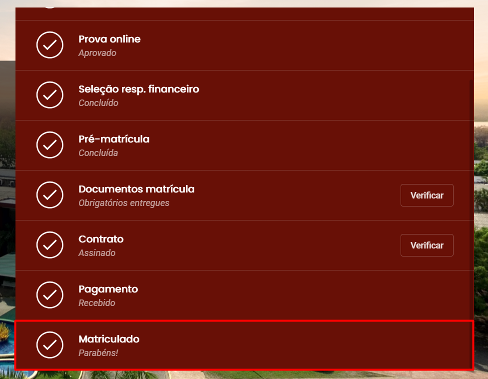 Este é o ultimo passo, para o candidato. Então, assim que ele realizar o pagamento, automaticamente no portal será atualizado para "Matriculado" e dentro do RM também.