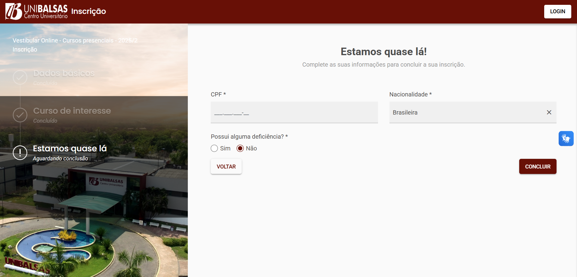 E nesta ultima tela da inscrição pede mais algumas informações básicas do candidato.