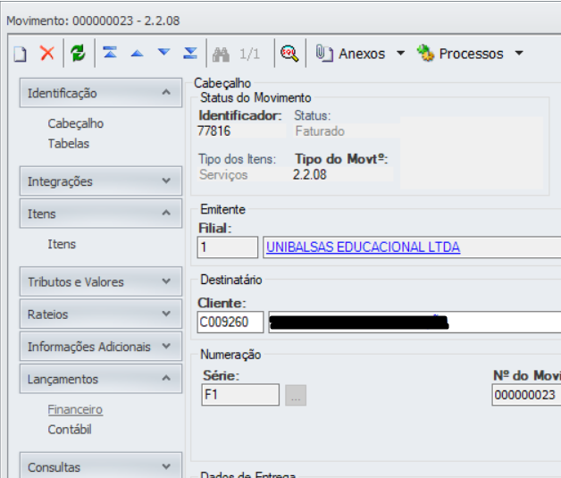 Cliente | Código Financeiro |
