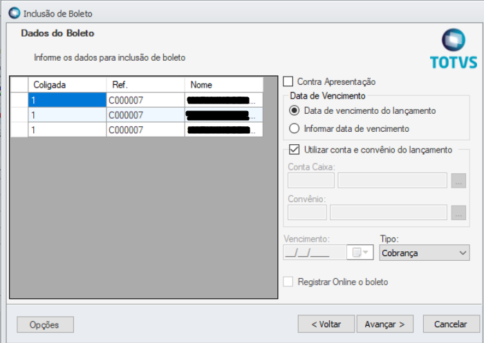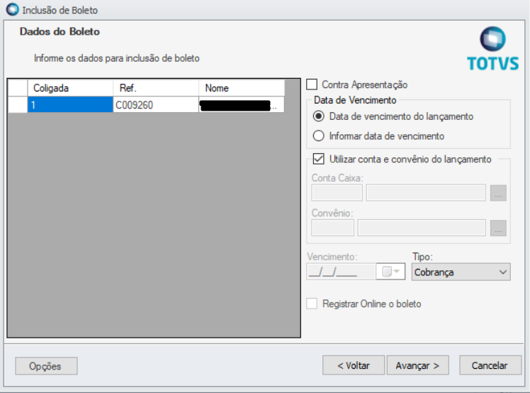 Tipo | Cobrança |