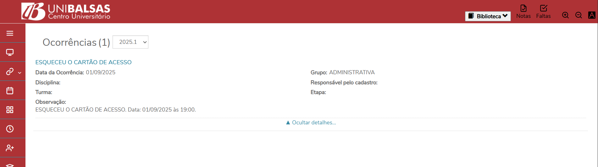 Após isso, a ocorrência foi registrada, e o aluno será informado tanto no portal do aluno, quanto no EduConnect