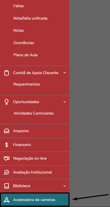 Após acessar o portal do aluno, aperte nas três barrinhas horizontais no canto superior esquerdo!