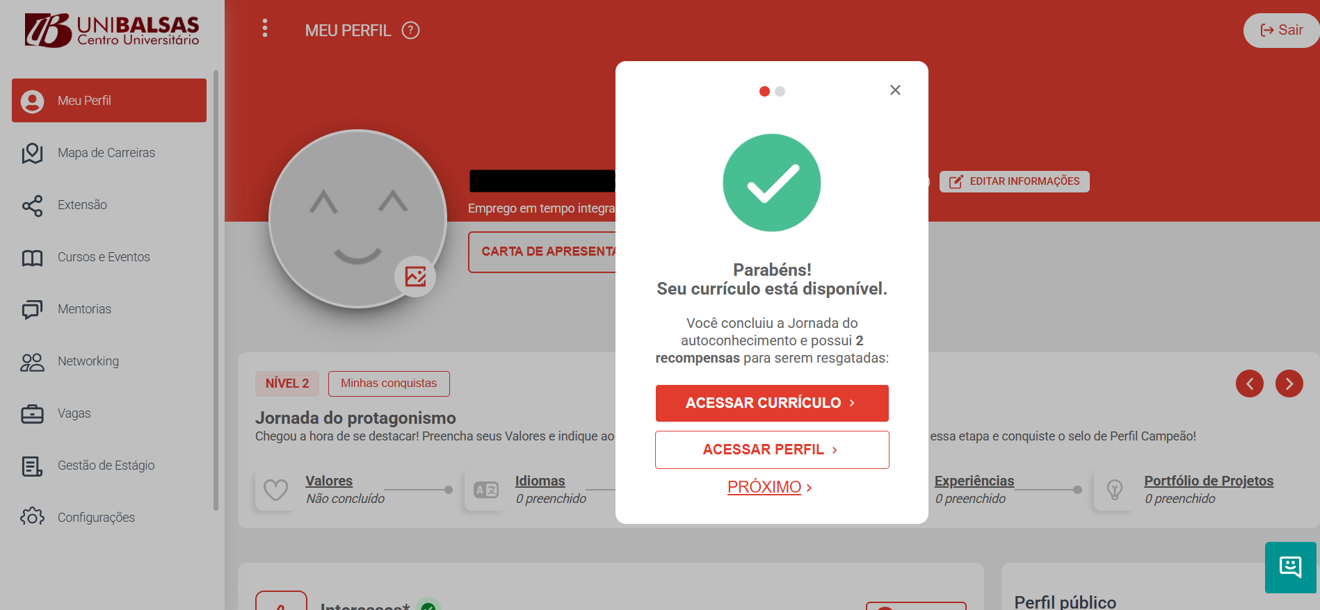 Assim que concluir irá para essa outra tela de conclusão de cadastro.